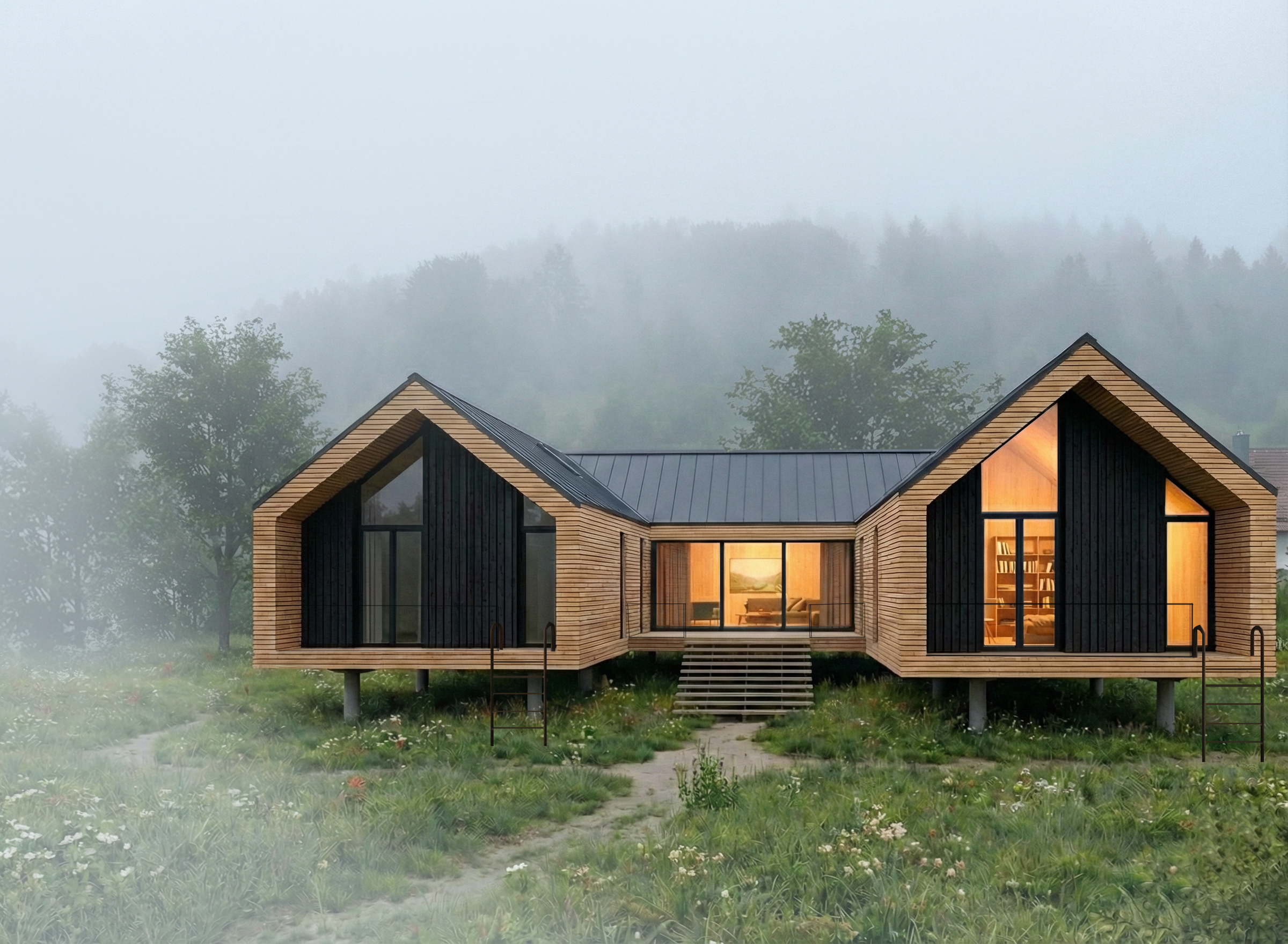 Nahe der Donau entstand mit dem Bauvorhaben Haus B ein eingeschossiger Bungalow in Holzbauweise. Die besondere Lage des Gebäudes – innerhalb eines potenziellen Überschwemmungsgebiets bei großen Hochwasserereignissen – stellte spezifische Anforderungen an die bauliche und tragwerksplanerische Konzeption.